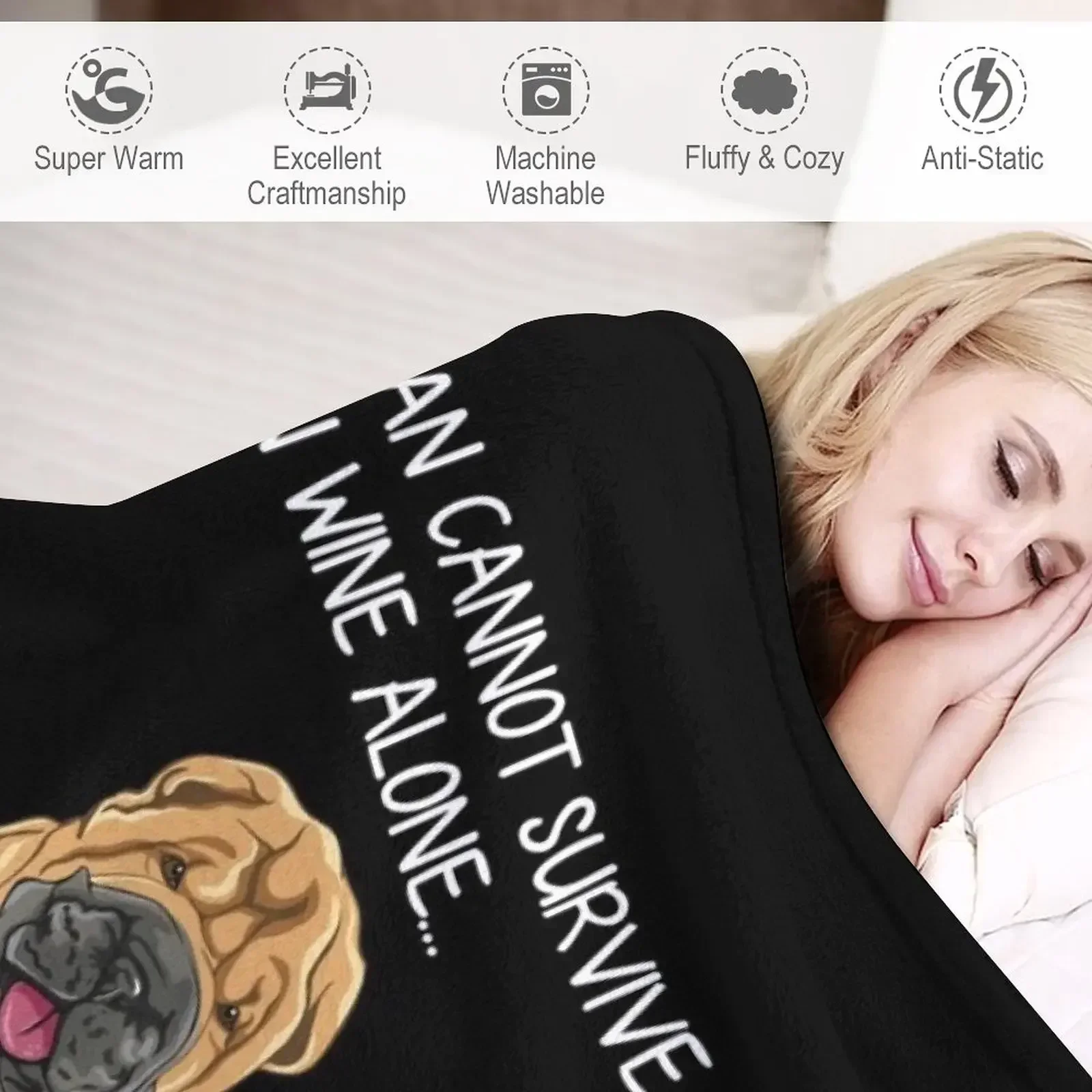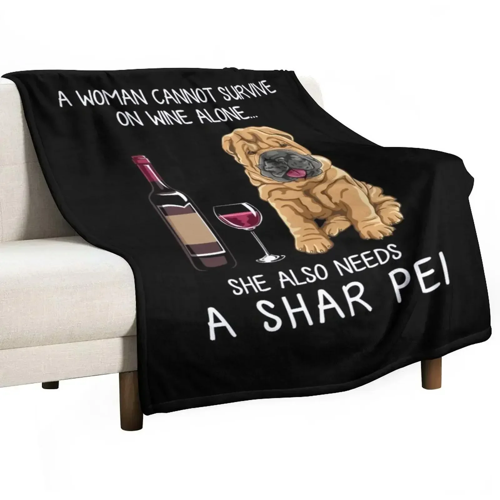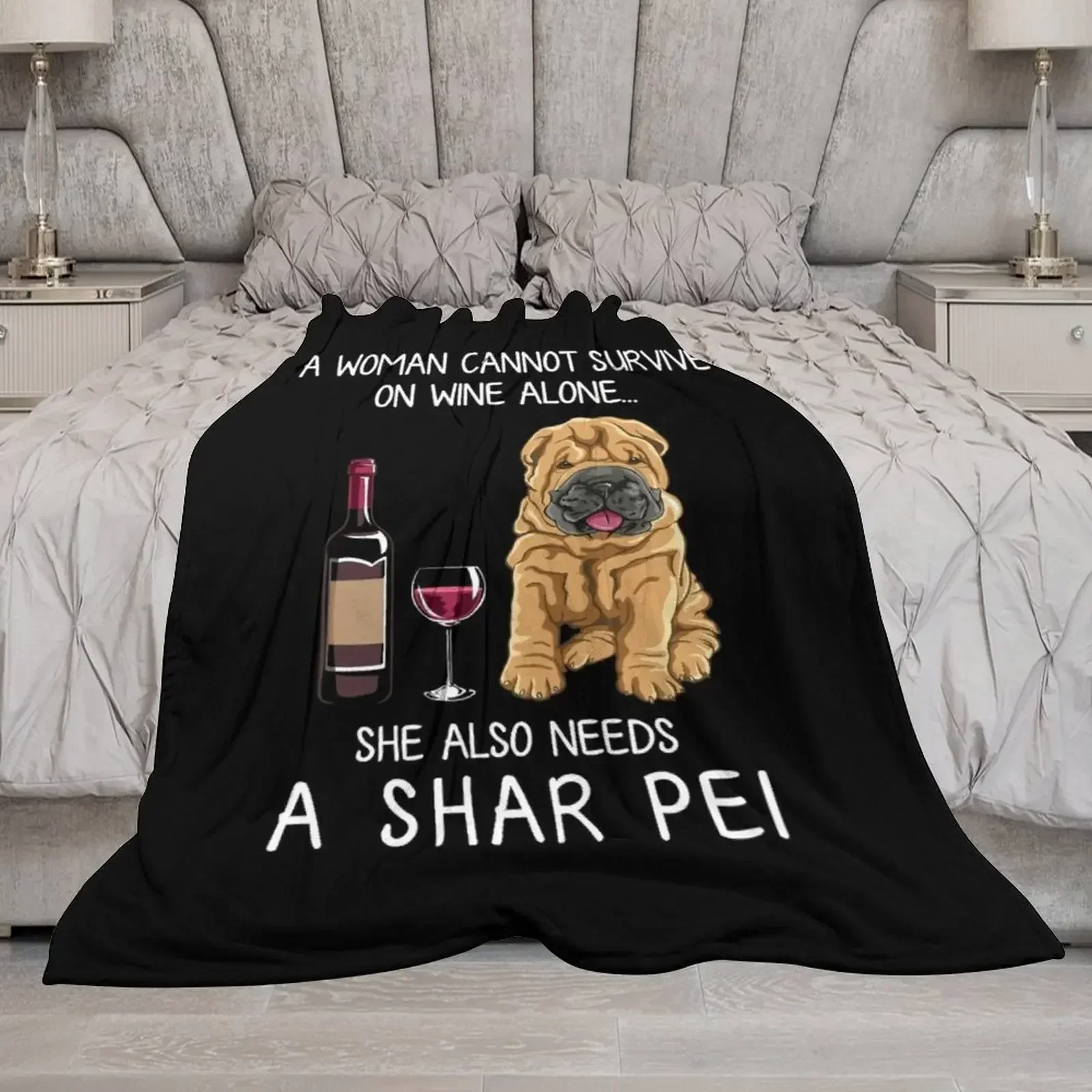 Shar Pei and wine Funny dog Throw Blanket Luxury Brand Decorative Sofa Blankets